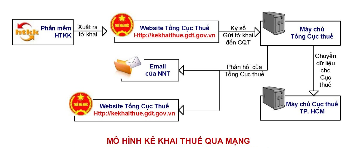+ Nộp tờ khai thuế tại cục thuế hay chi cục thuế quản lý Doanh nghiệp. Hoặc làm thủ tục đăng ký và nộp tờ khai thuế qua mạng cho quý khách hàng.