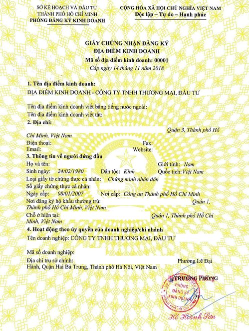 DỊCH VỤ THÀNH LẬP ĐỊA ĐIỂM KINH DOANH TRỌN GÓI