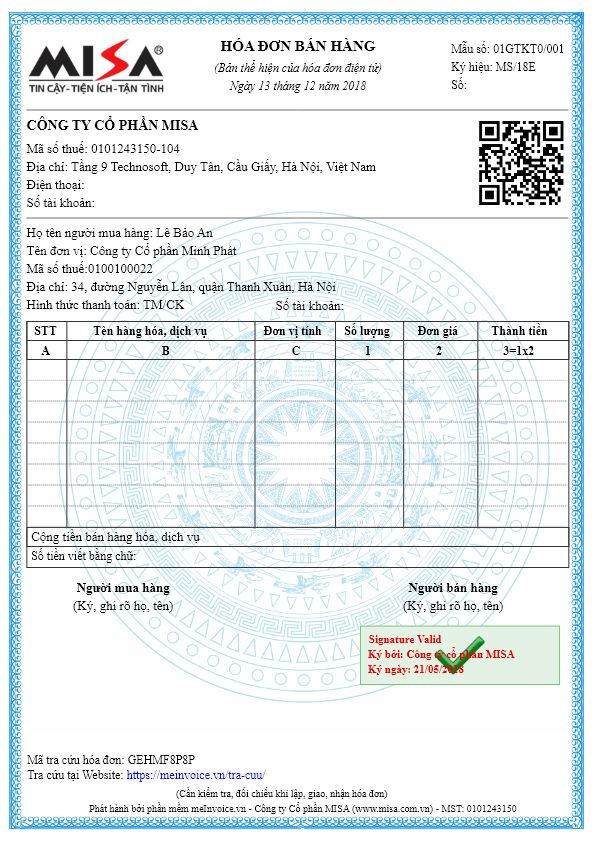 - Luân chuyển: Hóa đơn được gửi đến khách hàng bằng hình thức email (thư điện tử). Dữ liệu được lưu online (trực tuyến), mỗi khách hàng chỉ cần có mã tra cứu sẽ xem được nội dung của hóa đơn.