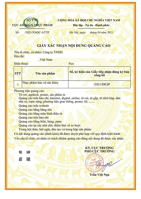 DỊCH VỤ XIN GIẤY PHÉP QUẢNG CÁO THỰC PHẨM CHỨC NĂNG
